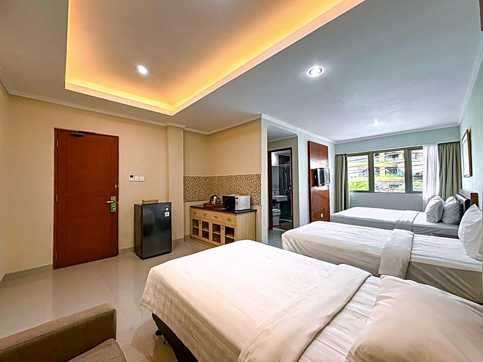 A rooftop outdoor pool welcomes sun-seekers year-round, with an adults-only vibe that keeps poolside lounging relaxed and refined. Free beach chairs and loungers dot the area, making it easy to soak up Bali’s vibes while staying close to Denpasar’s energy.